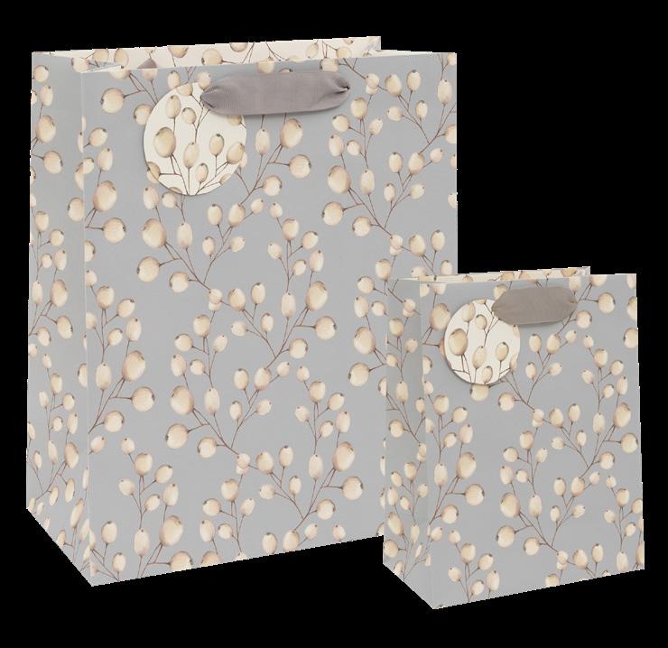 This program offers our Kraft collection with the addition of a few coordinating traditional gift bag designs and 24 rolls of one of our lovely Kraft continuous roll gift wrap designs. This display offers space for tissue paper and gift tags that coordinate with the gift bags and wrap. The following product is included in this program to maximize the space on the attractive spinner.