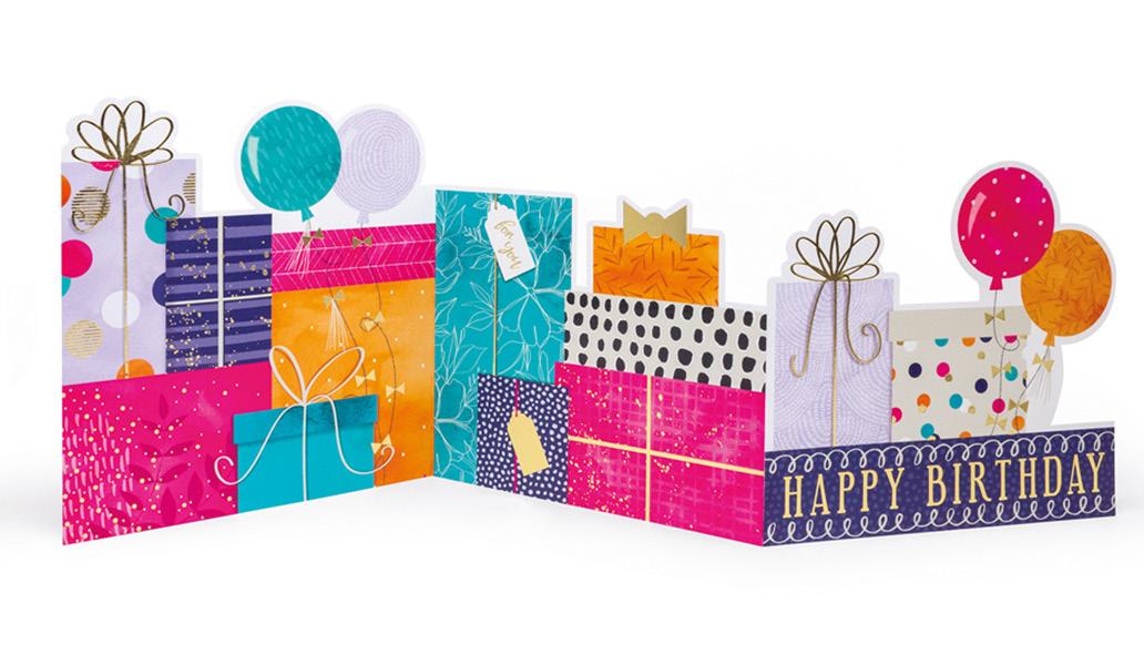 Parade is a clever range that offers three styles of cards--Zig Zags, 3D Box cards, and 3D fold outs. These cards are embellished with finishes like metallic foils, spot varnishing and die-cuts.