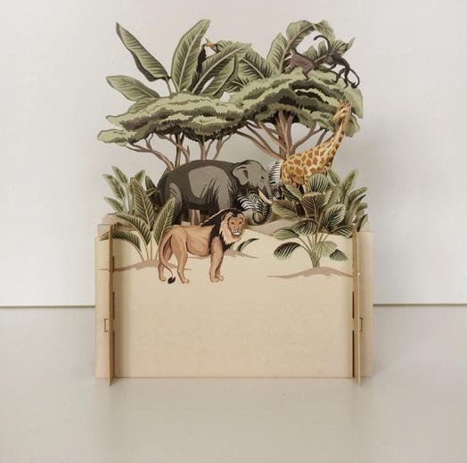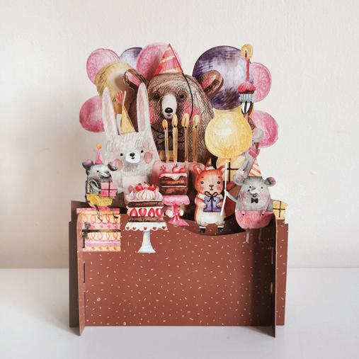 This charming collection of childrens’ 3D pop-up cards features artwork depicting popular childhood themes and are crafted of five layers of intricate laser-cut designs.