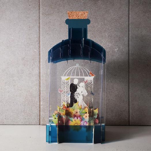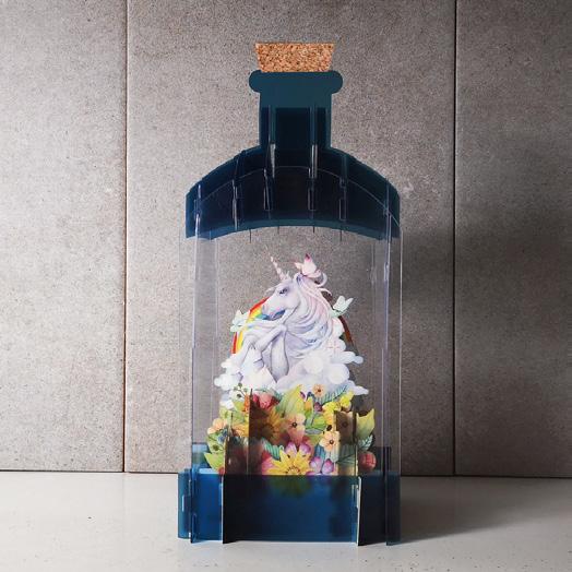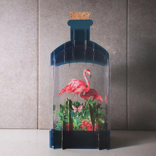 A new take on the wildly popular Message in a Bottle cards, these free-standing 3D popup cards are crafted of recyclable plastic and paper, beautifully engineered to replicate a bottle and showcase every exquisite detail. Cards are cello wrapped flat and includes an envelope for mailing. Measures 6-1/4” H x 4-1/4” square when open.