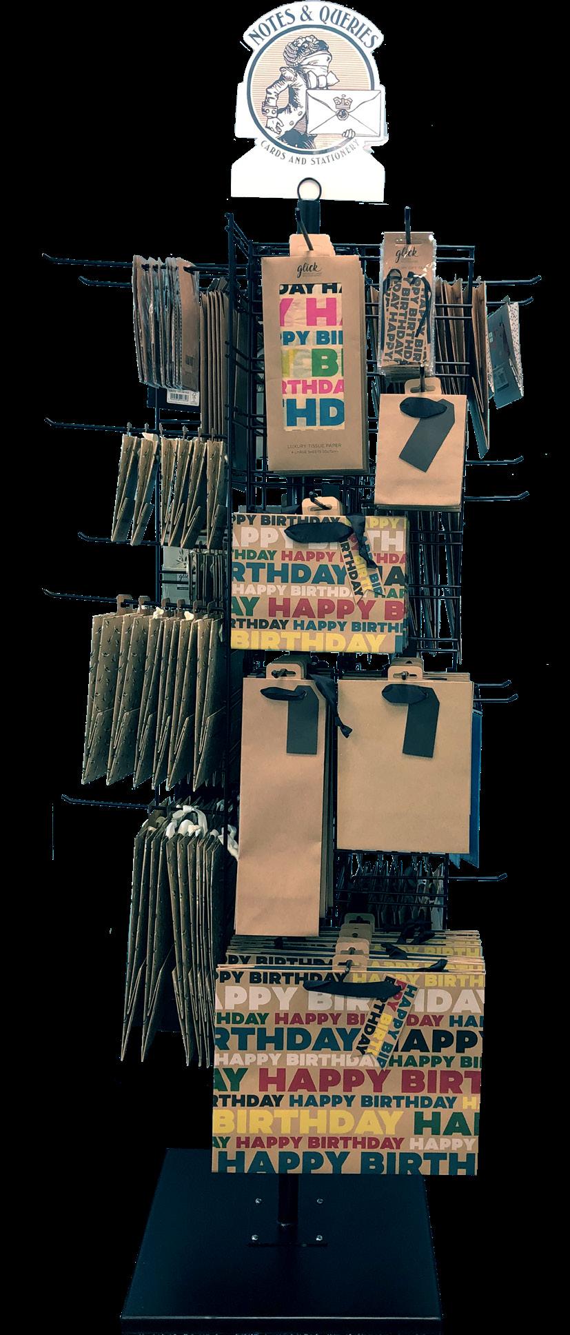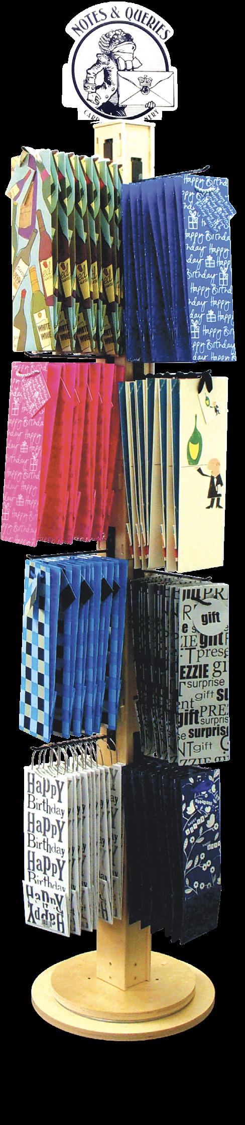 This program offers our best selling gift bag designs and includes space for tissue paper that coordinates with the gift bags. The following bag sizes are included in this program to maximize the space on the attractive spinner.