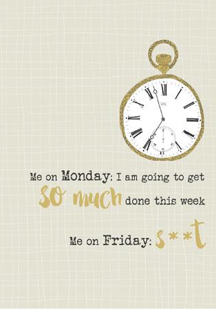 Front: Me on Monday: I am going to get so much done this week.