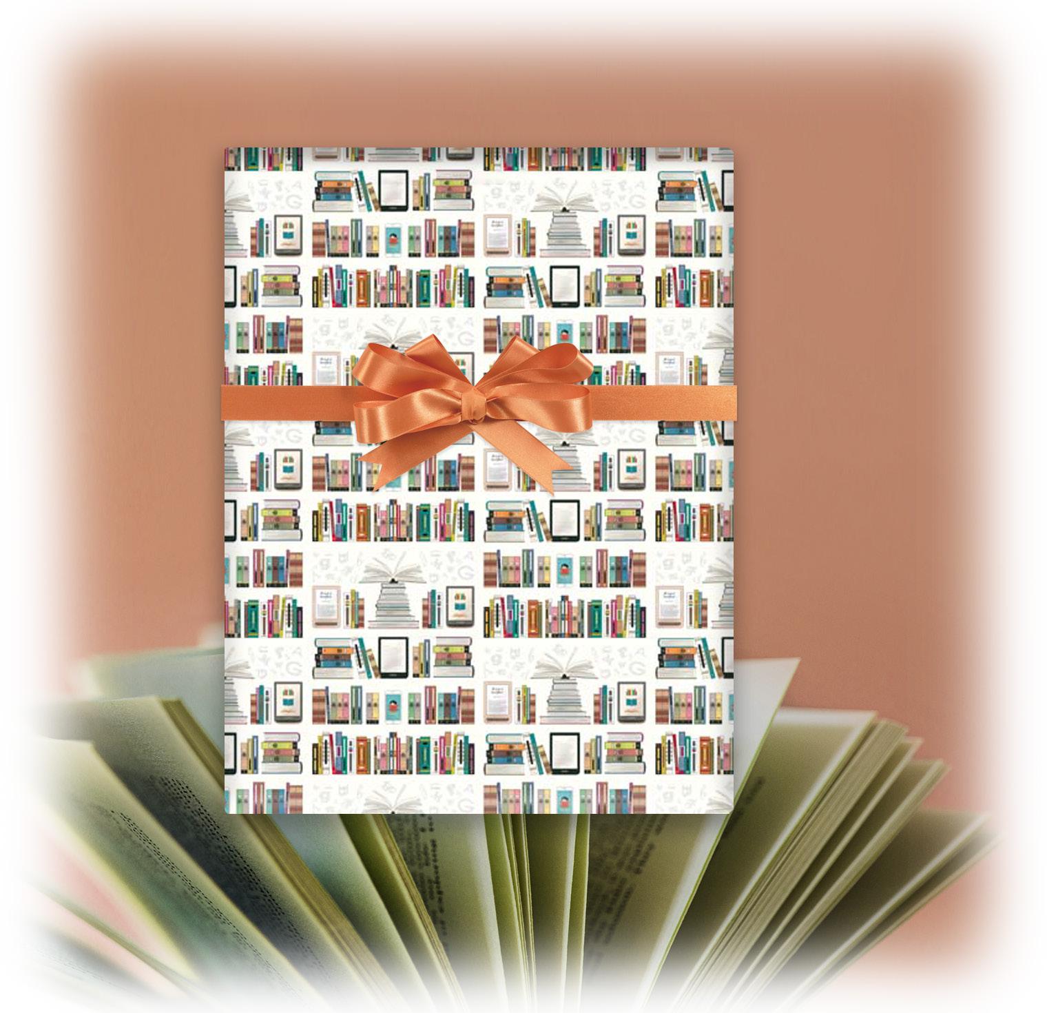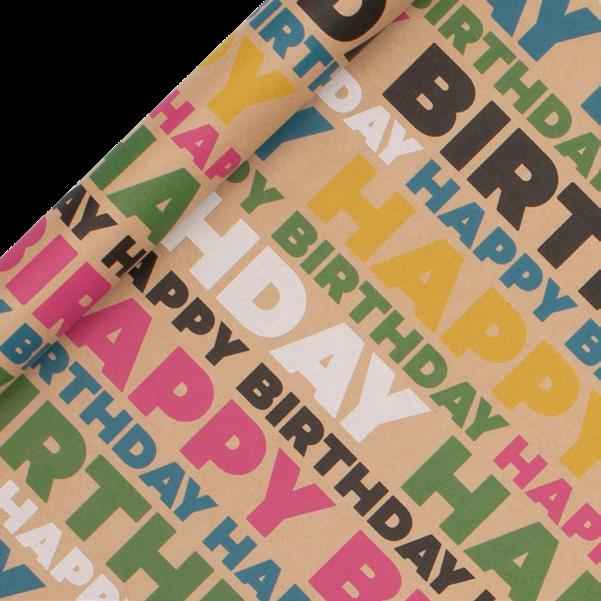 A lovely collection of continuous roll gift wrap with popular designs on Kraft paper background.