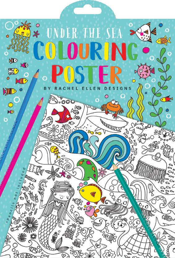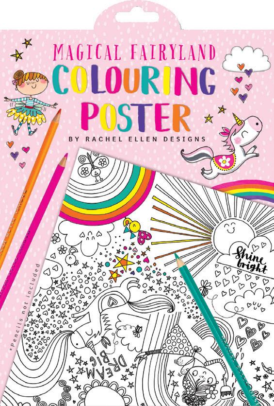 These whimsical coloring posters bring children hours of enjoyment. Each coloring poster features a large themed illustration in Rachel’s distinctive style. Packaging is a cardstock envelope with eurohook tab.
