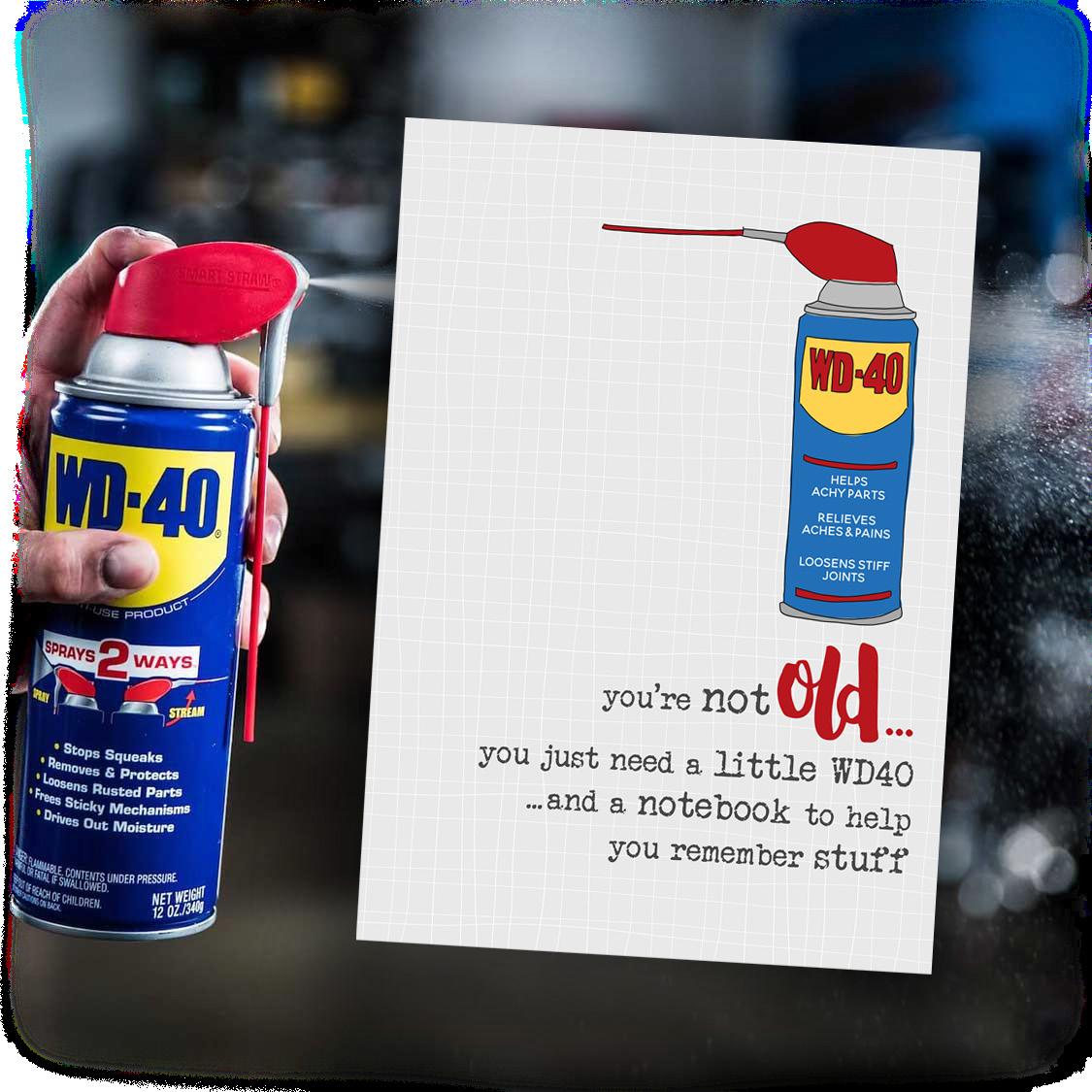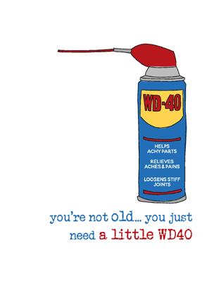 Front: You’re not old... you just need a little WD40 ...and a notebook to help you remember stuff.
