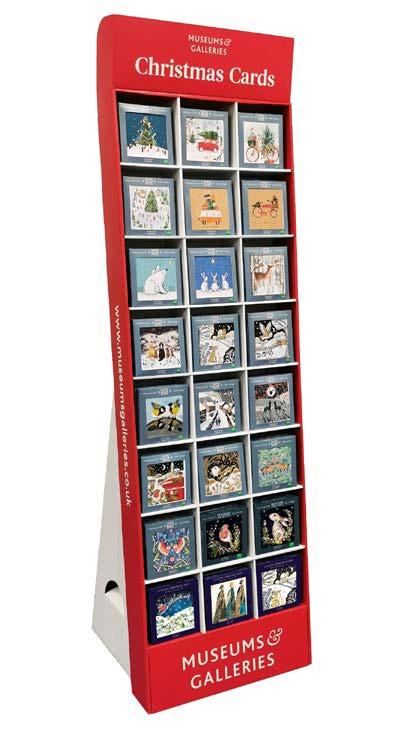 If you are looking for a floor Christmas Display Program, we offer Museums & Galleries point of sale floor display unit. This display is free of charge when filled with M&G festive Christmas packs. CDU measures 62.75” X 16.125” x 9.5”. It is designed to hold 24 designs of only the 5.25” or 5.5” square size packs.
