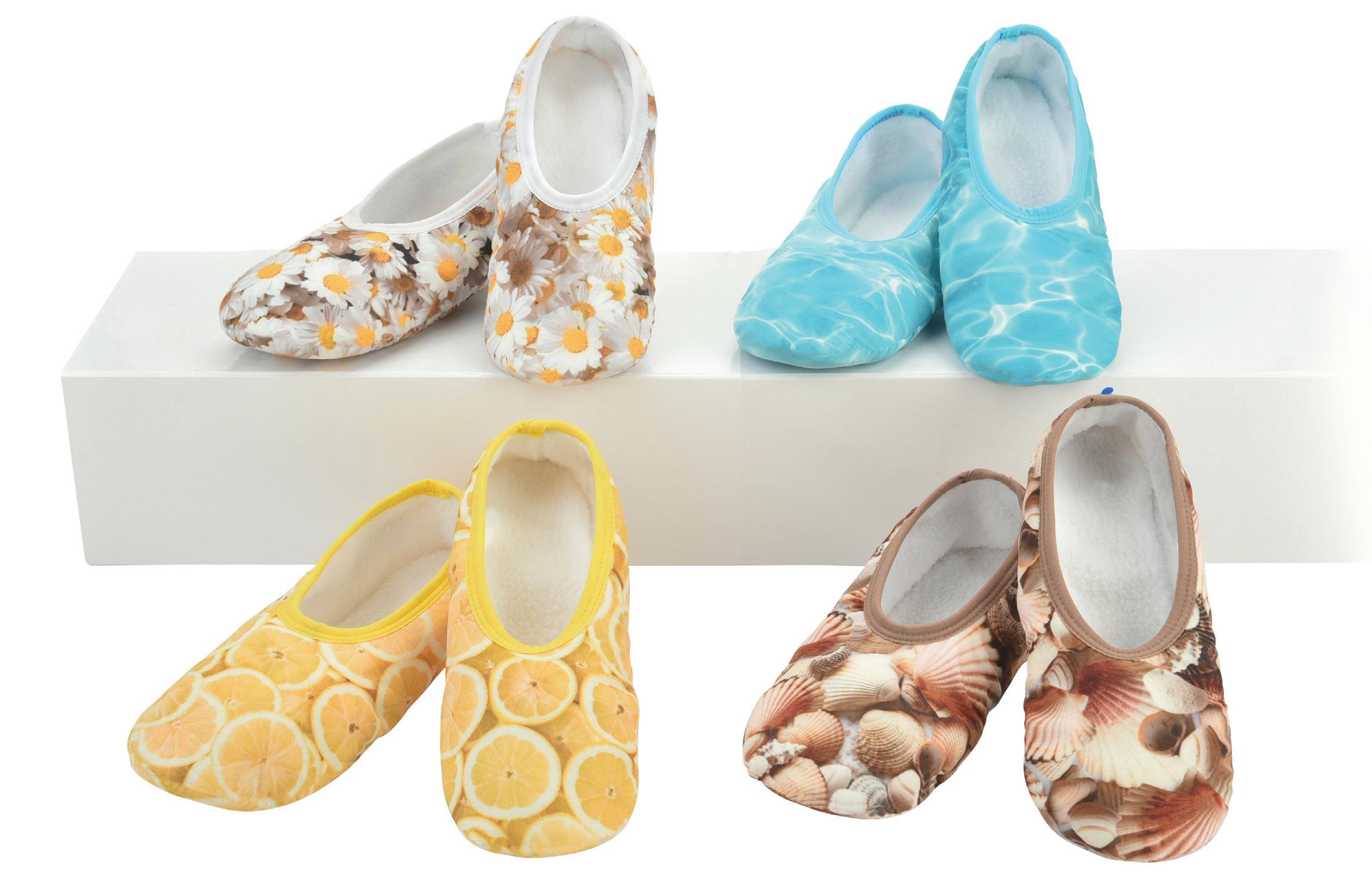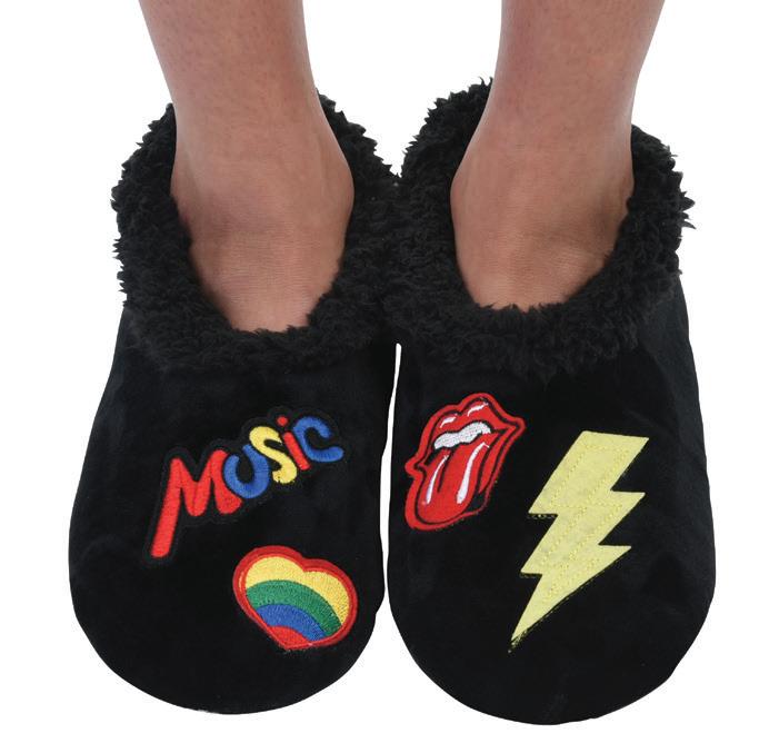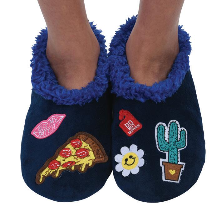 20 CLASSIC SNOOZIES!® BODY • 36 PAIR/CASE COLLECTION CASE INFO 6 groovy designed patch themed snoozies!® • Lined with our exclusive dyed pom pom™ cozy Sherpa • Non skid soles • Machine Washable Case includes 6 pairs per design/color on size scale of 1 small · 3 medium · 2 large Style: S-groovy Cost per/pair: $5.75 NOW $4.50 FOB: North Carolina & Seattle, WA Reorders: In 36 pair case assortment and 6 pair solid size packs Groovy WAS $5.75 per/pair NOW $4.50