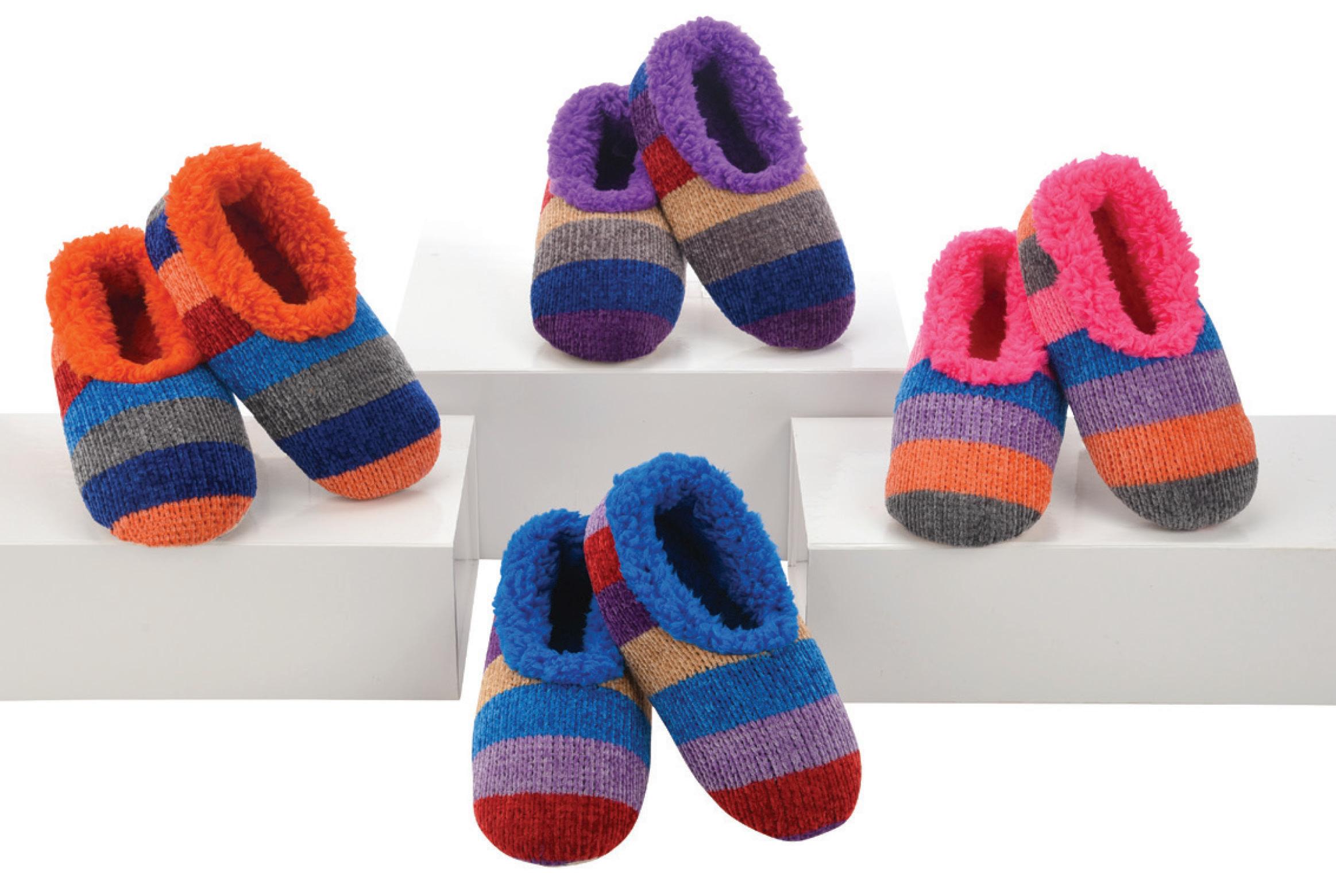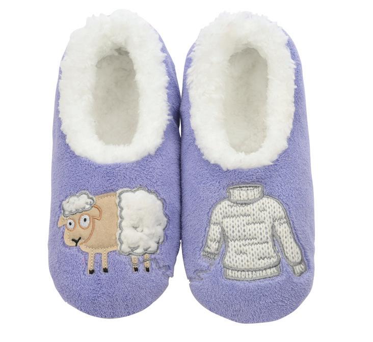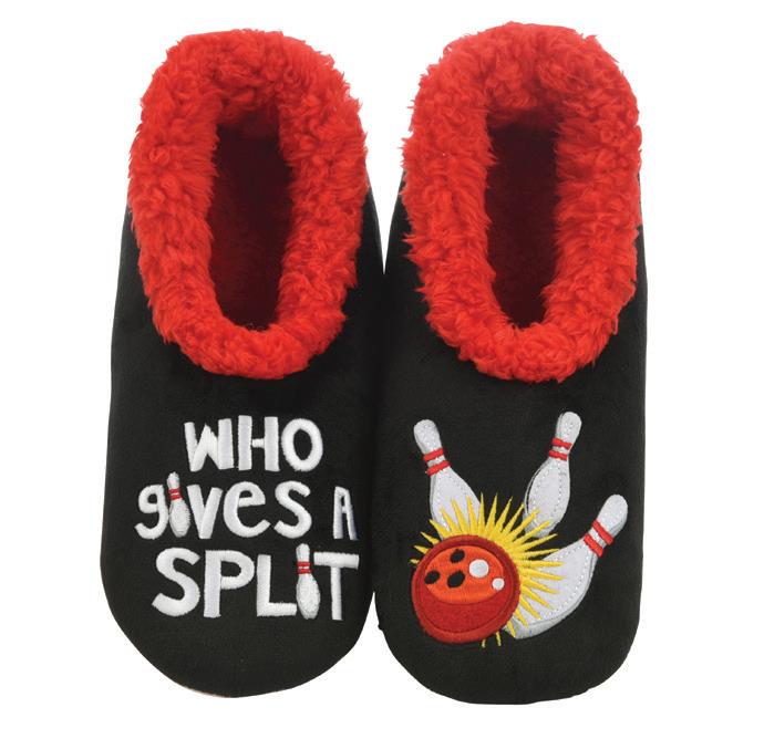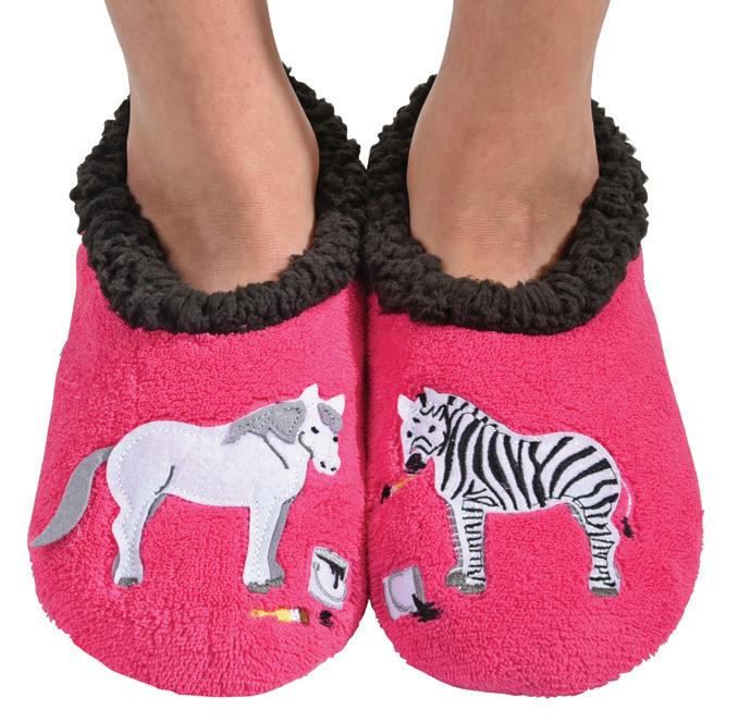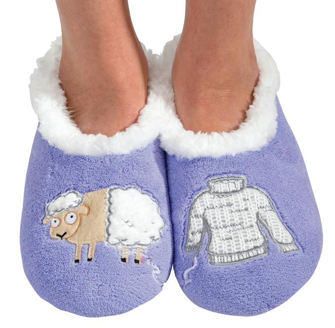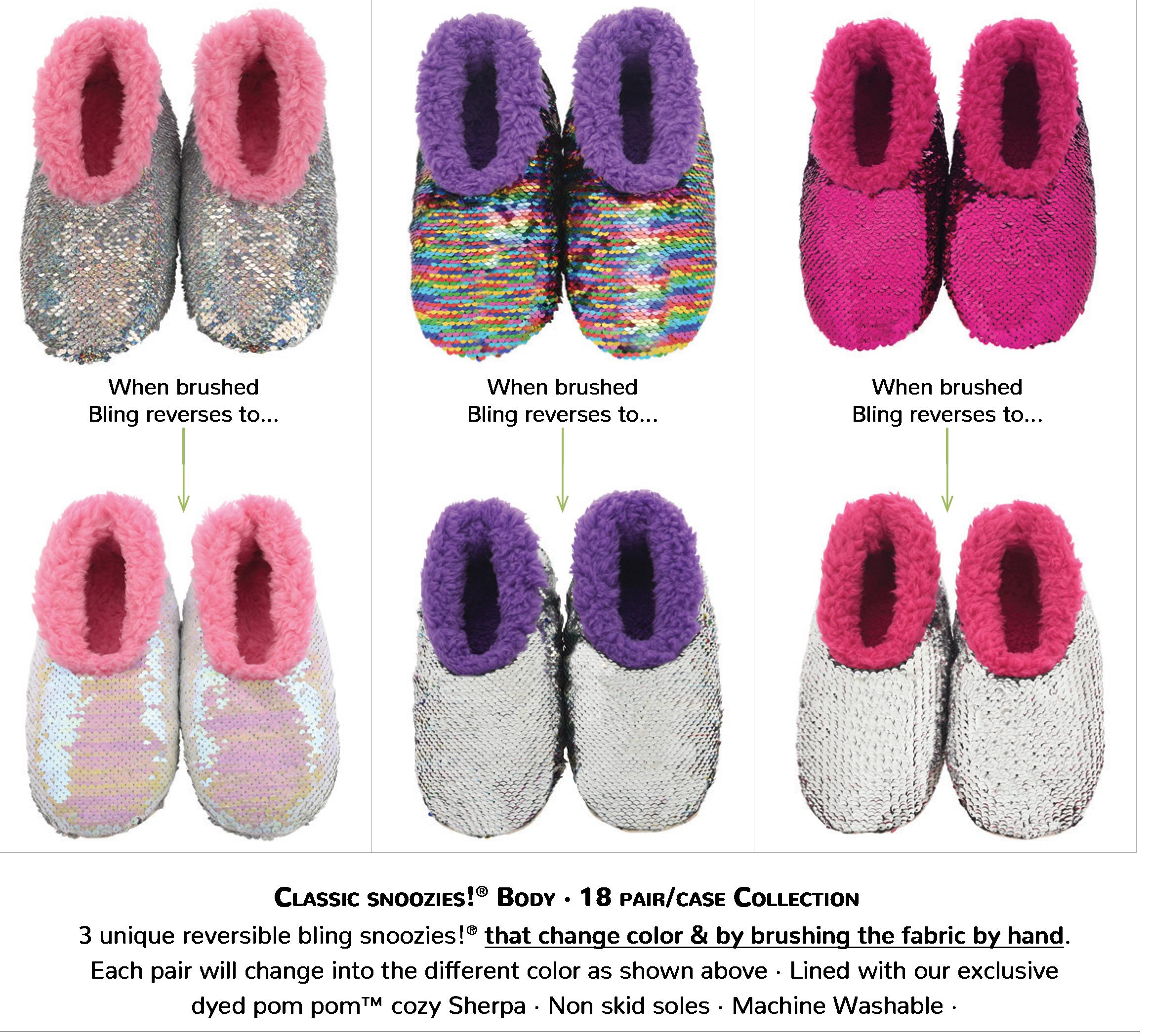 2 SPLITZ SNOOZIES!® CLASSIC BODY • ShIPPING NOW 6 unique splitz designs • Lined with our exclusive dyed pom pom™ Sherpa • Non skid soles • Machine Washable • Hangs SIDE BY SIDE