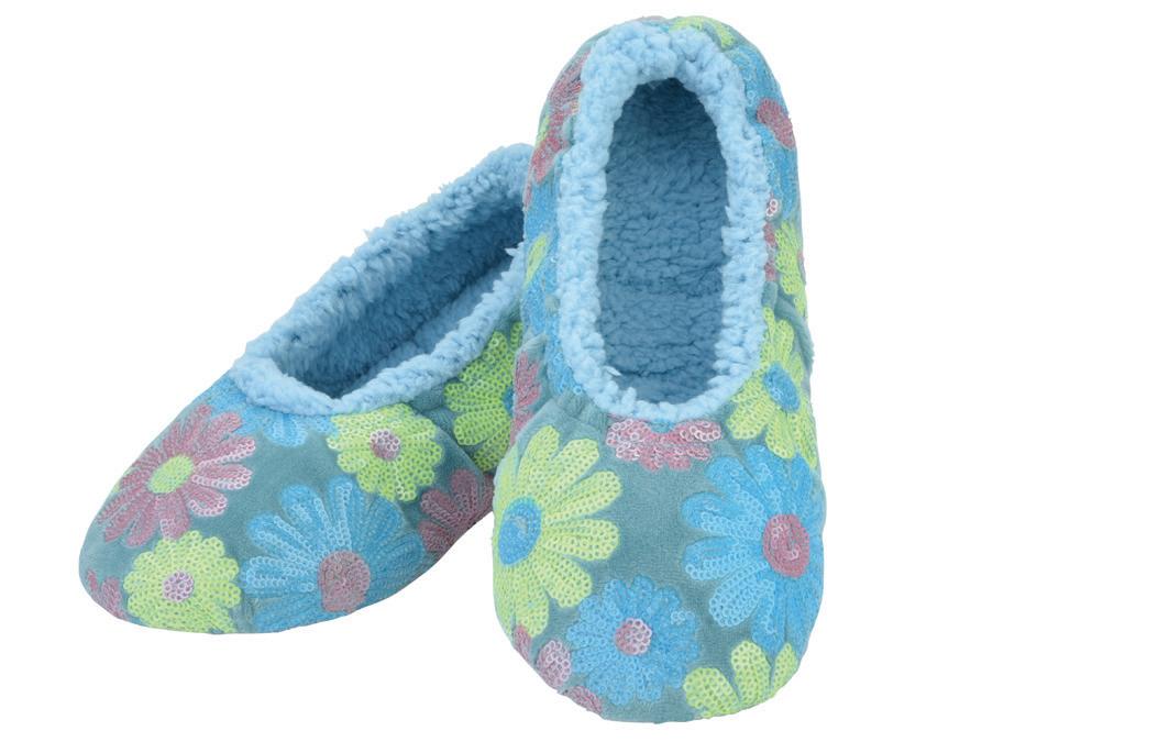NOW 4 unique colors in daisy design patterns created with sequins • Lined with our exclusive dyed cozy Sherpa • Non skid soles • Machine Washable