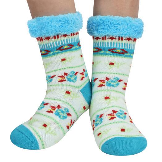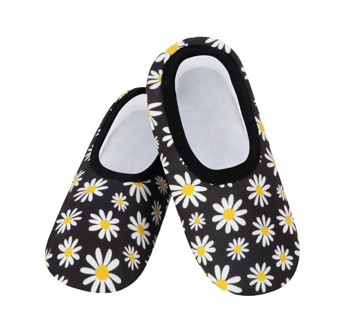 Bright, fun daisy and floral pattern in fully lined cozy sherpa sock style. One size fits women’s shoe sizes 5 to 10. Will not shrink in the wash!
