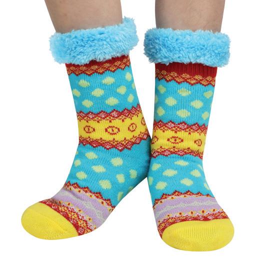 Four unique designs in fall colors in our fully lined cozy sherpa sock style One size fits women’s shoe sizes 5 to 10. Will not shrink in the wash!
