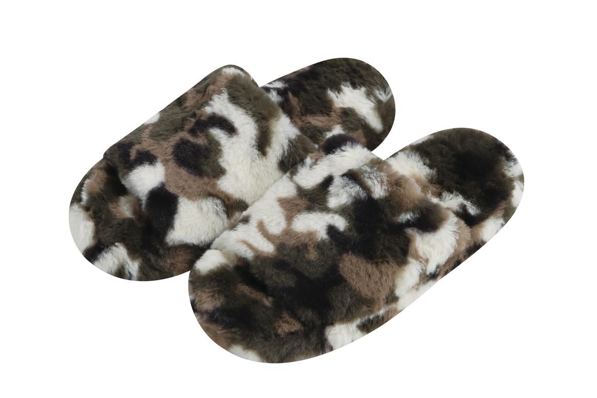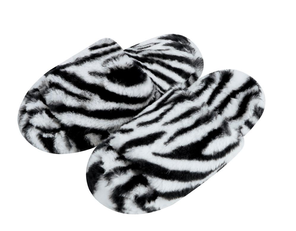 Our Sassy Slide has gone WILD! Our amazing faux fur open toe slide snoozies!® body in alluring jungle prints. A must have slipper for the fashionista in all of us! Delivery January 2023 (Delays Possible) | FOB North Carolina