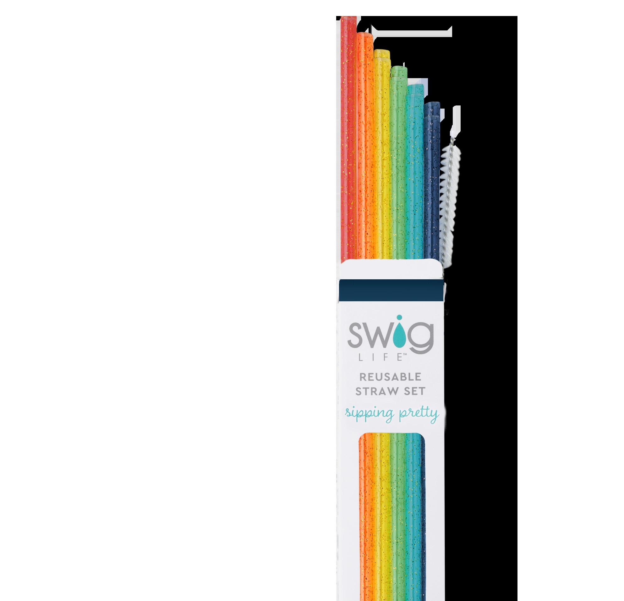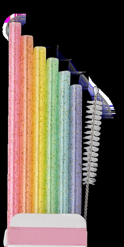 NEW! Rainbow Glitter Reusable Straw Set + Cleaning Brush $4.00 EA Min of 6 - $24.00