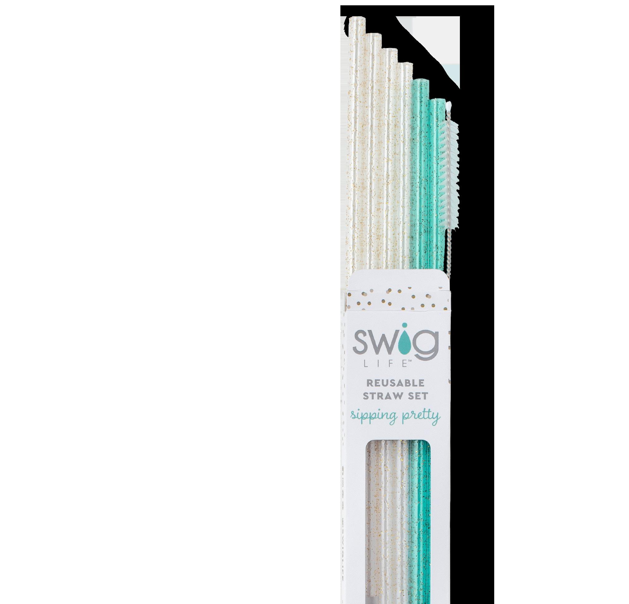 Glitter Clear + Aqua Reusable Straw Set + Cleaning Brush $4.00 EA Min of 6 - $24.00