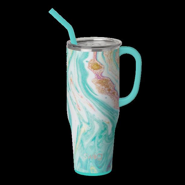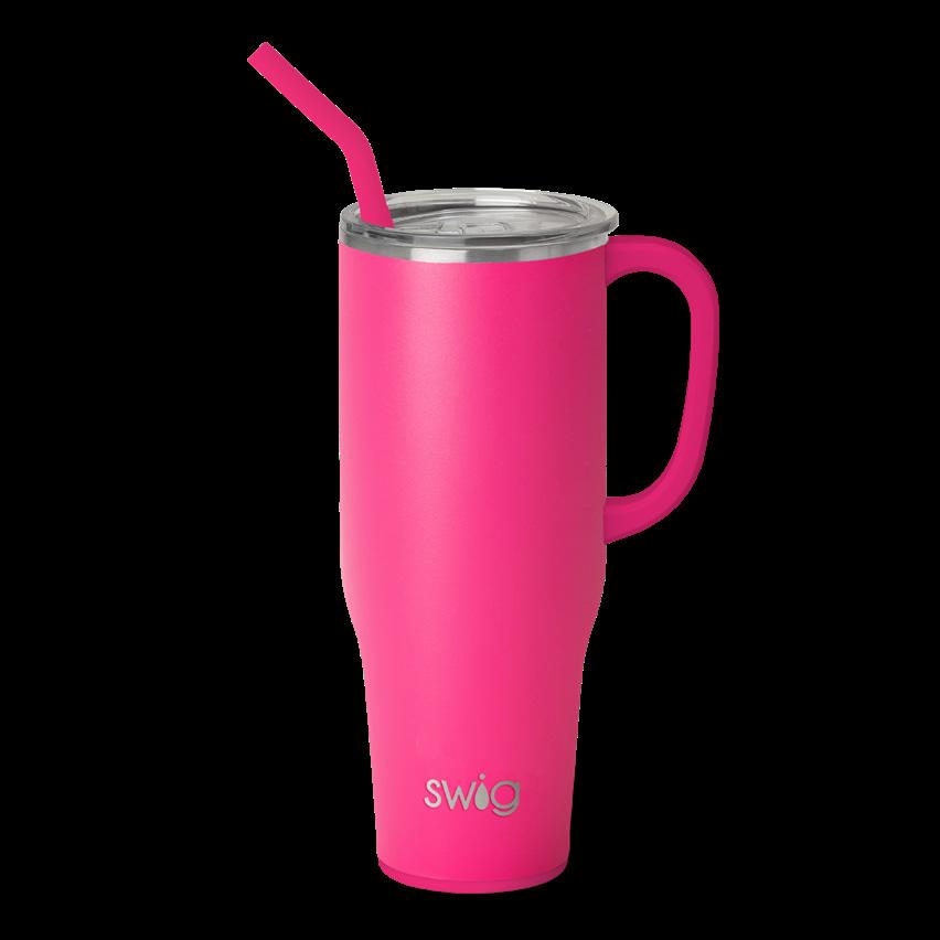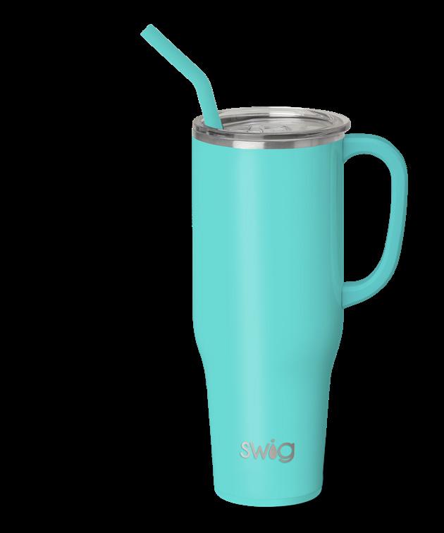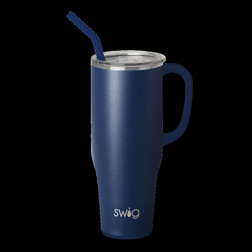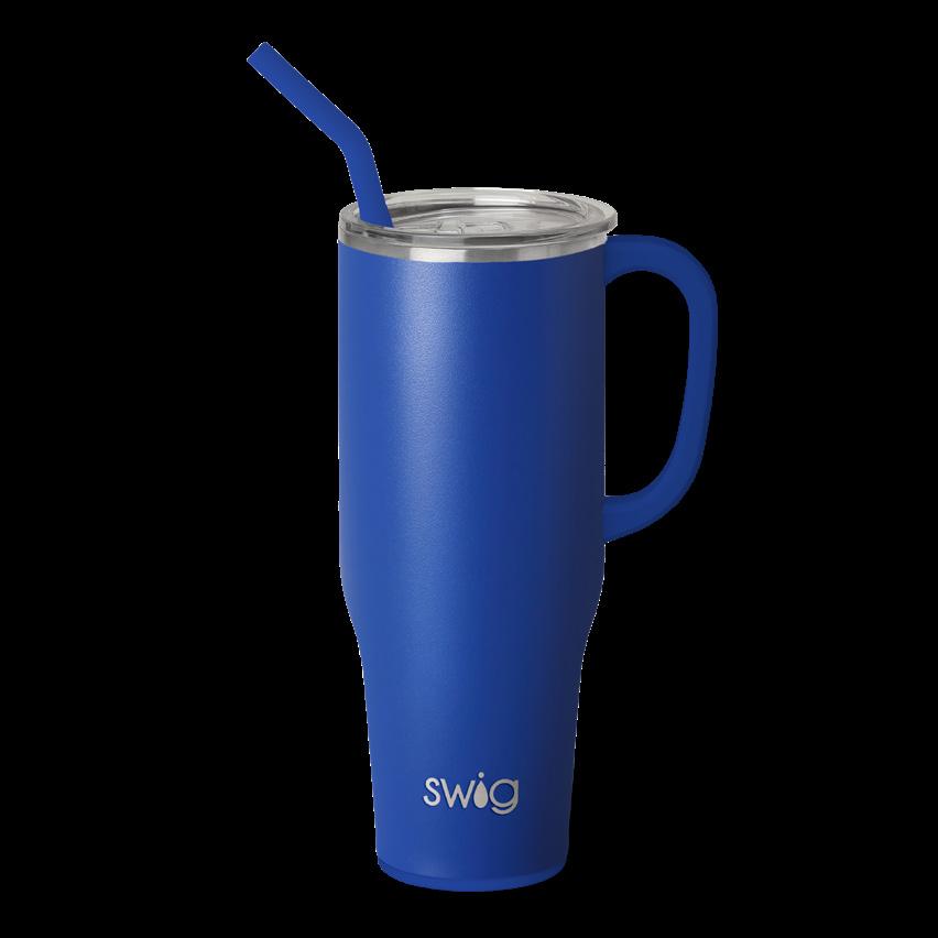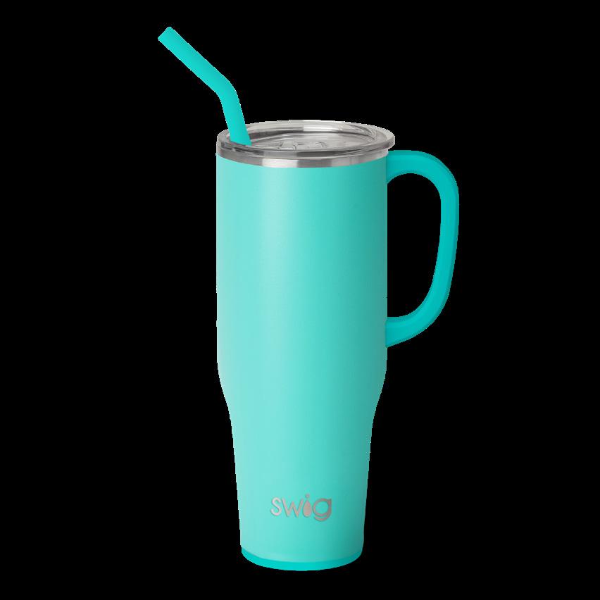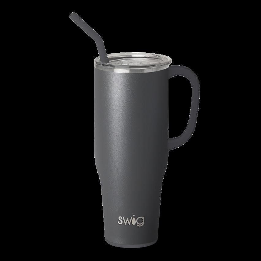 Stay hydrated with less refills! This extra large travel mug holds a whopping 40oz!