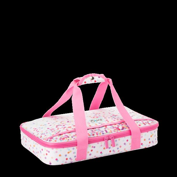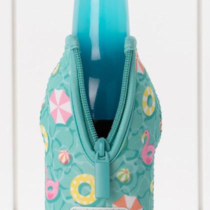 Zip closure opens wide to easily insert and remove a bottle.