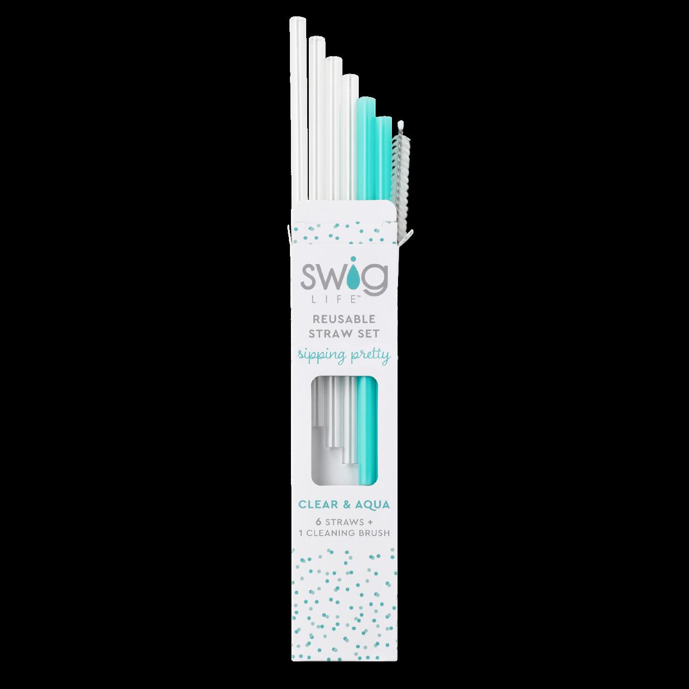 Clear + Aqua Reusable Straw Set + Cleaning Brush $4.00 EA Min of 6 - $24.00
