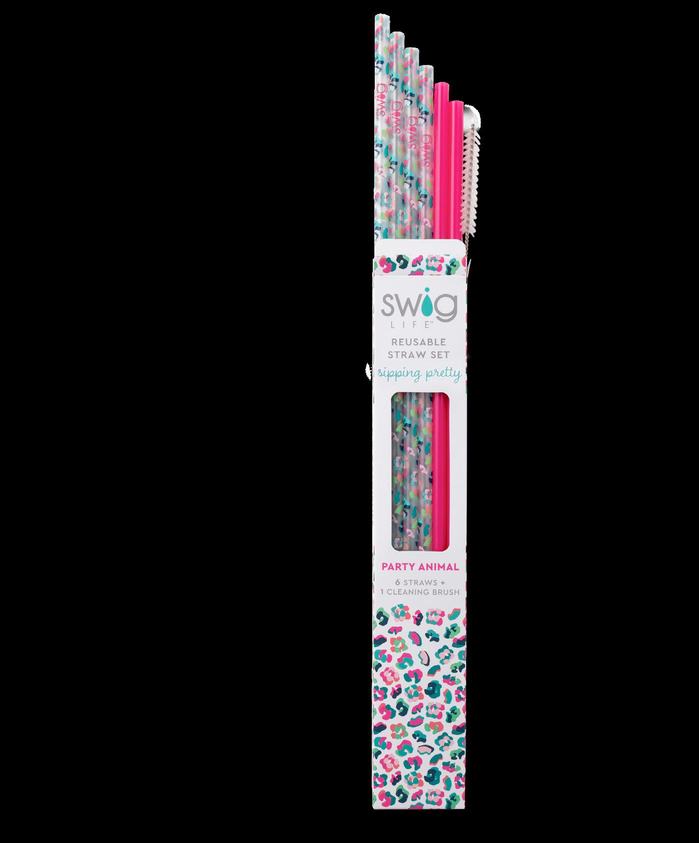 Party Animal Reusable Straw Set + Cleaning Brush $4.00 EA Min of 6 - $24.00
