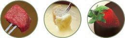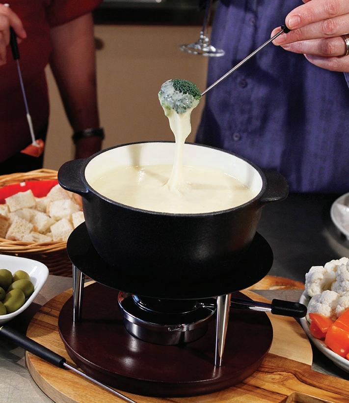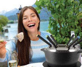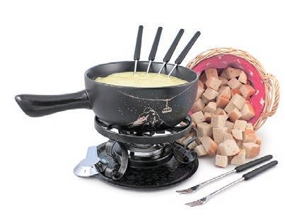 Lugano fondue sets include: pot, 6 forks, rechaud, fondue burner and recipe card. See page 13/14 for accessories.