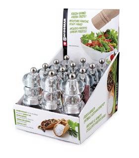 8 pepper, 4 salt mills 24 x 17.8 x 17.8 cm / 9 x 7 x 7 in Prepack of 12 SRP $18.00 ea E-900 SM304973