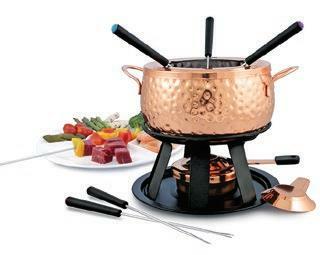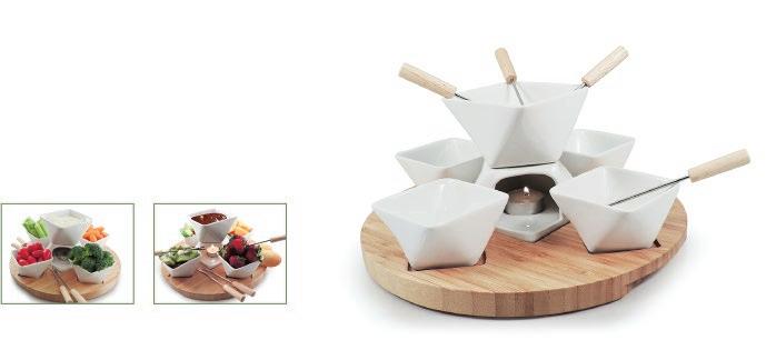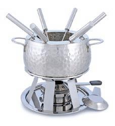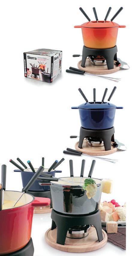 Sierra fondue sets include: pot, 6 forks, spatter ring, rechaud, fondue burner and recipe cards. See page 13/14 for accessories.