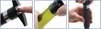 2. Securely place and completely insert wine stopper in bottle 3. Hold pump gently in stopper and with other hand, pump 10-15 times (stop pumping when firm resistance is felt)