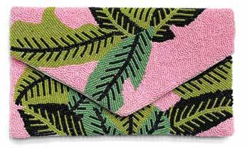 Sold in quantities of 3 | $26 each | One size Multi Color 60% Cotton, 30% Glass, 10% Iron | 10” L x 6” W B3-MULTI $26 Pink Frond 60% Cotton, 30% Glass, 10% Iron | 10” L x 6” W B3-PFRND $26 Paisley 60% Cotton, 30% Glass, 10% Iron | 10” L x 6” W B2-PAIS $26 Palm Frond 30% Resin, 30% Rayon, 20% Glass, 20% Cotton | 2.5” L x 1.5” W ER-BFRND $9 Starfish 60% Glass, 20% Brass, 20% Cotton | 3” L ER-BSTARF $9Pink Flower 60% Glass, 20% Brass, 20% Cotton | 2.5” L ER-PFLOR $9