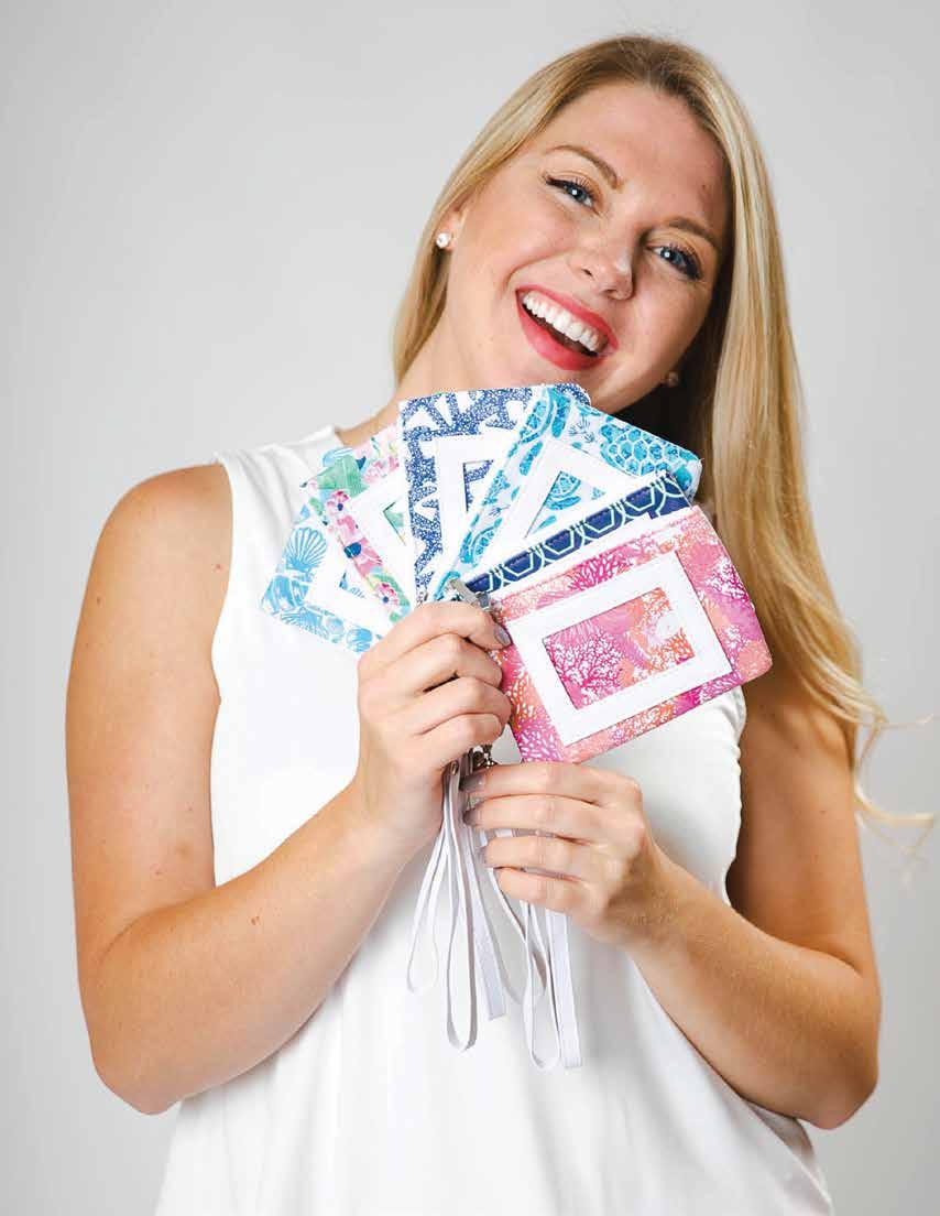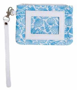 Wristlet Sold in quantities of 3 | $8 each | Cross grain leather with detachable strap | 5.5” L x 4” W Navy with Green Geometric ID-NGEO $8 SAVEMORE ONOUR VALUE PROGRAM5% I.D. Wristlet Program 3 of each color, 6 colors, 18 pieces Program: ID-P $136.80 Blue Sea Turtle ID-SEAT $8 Pink Sea Coral ID-PCRL $8 Blue Coastal Shells ID-BSHEL $8 Pink Pineapple Blossoms ID-PBLO $8 Navy Starfish ID-NSTAR $8