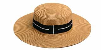 Zoe Hat - Tan with Black Ribbon head circumference: 23.5”, crown height: 3.5”, brim width= 3.625” 869-TAN $11