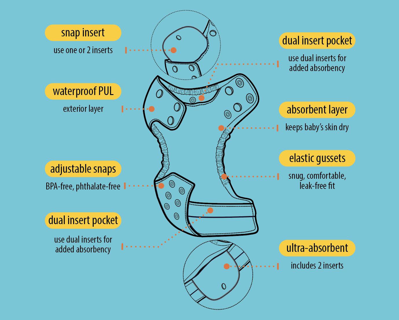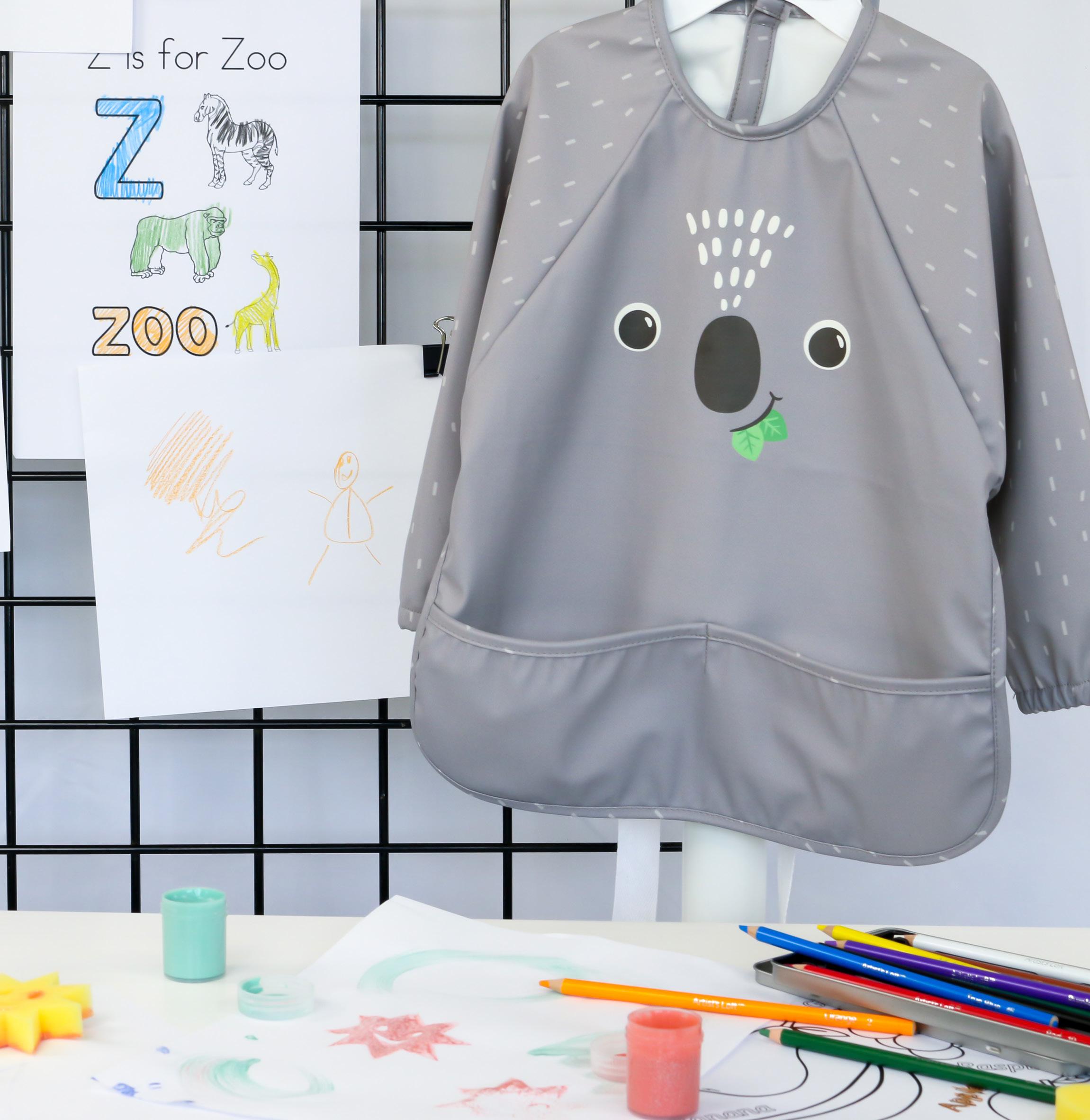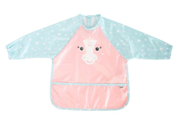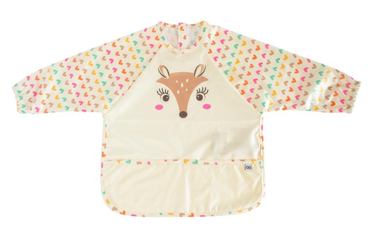The hook and loop closure at the back makes for easy on and off. Now you can delight in your little one’s development and messy adventures without the stress and extra outfit changes.