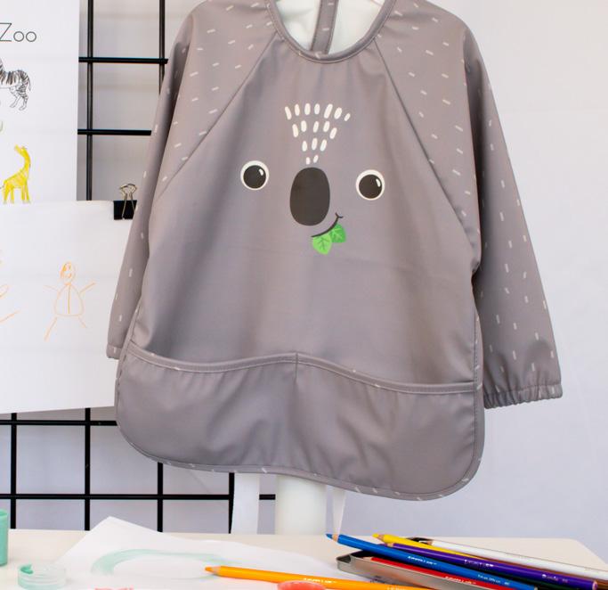 Protect toddlers’ clothes during sensory activities and self-feedings. Large front pocket is perfect for catching crumbs and spills.
