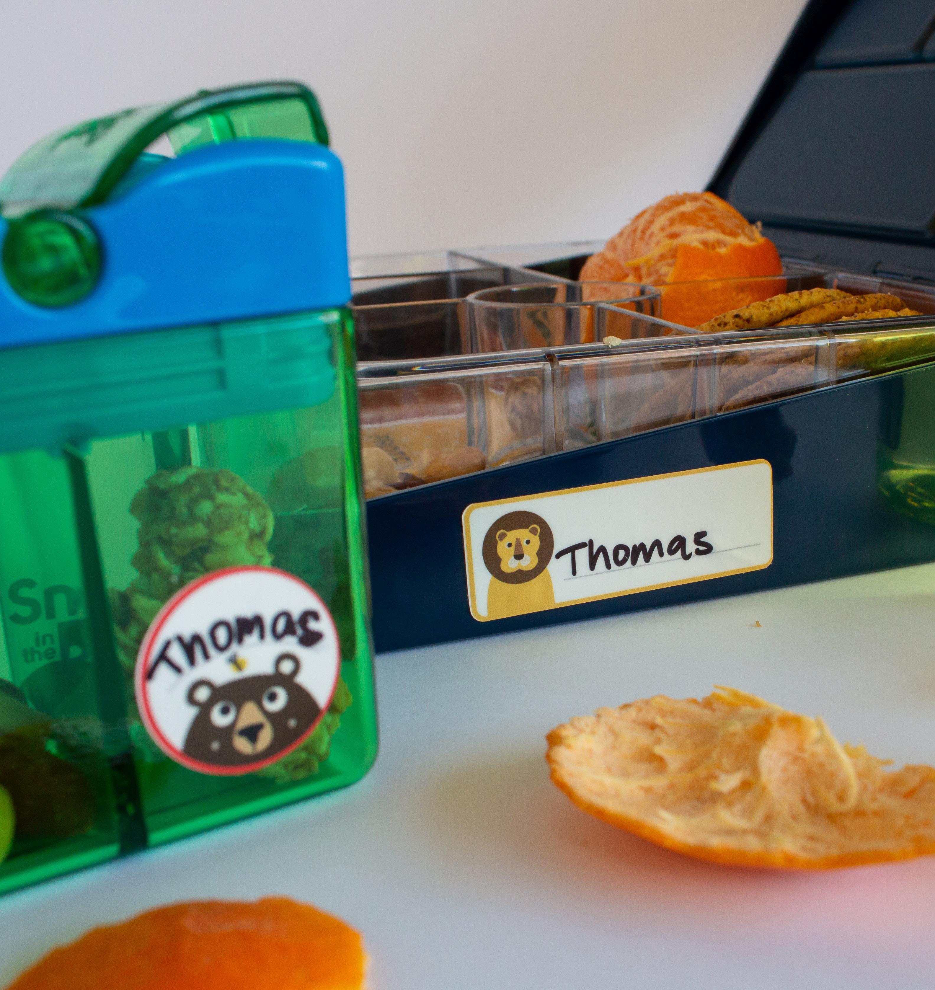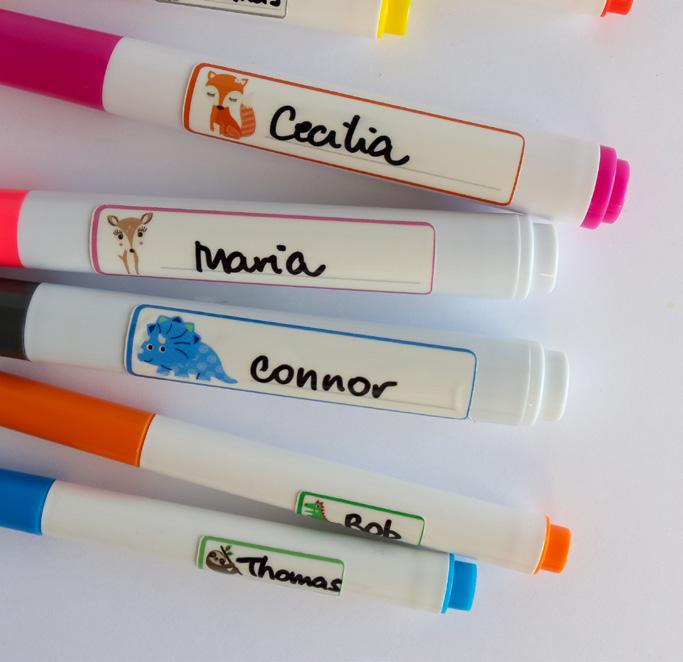 Long lasting, machine-washable and dishwasher safe stick-on labels. Sticks securely to surfaces like bottles, lunch boxes, toys, clothing care tags, shoes and boots.