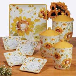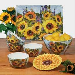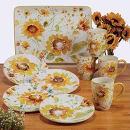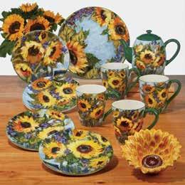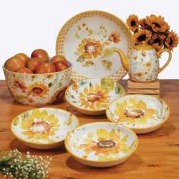 A Sunflower Fields © Nancy Mink C B A ITEM # DESCRIPTION UPC BAR CODE MIN QTY (A) COST M/C QTY (B) COST 28165 Dinner Plate 11” w(h30384*MSLQPr(w 12 $7.50 28166 Salad Plate 9” w(h30384*MSLQQo(Y 12 $6.25 28167 Mug 18 oz. w(h30384*MSLQRl(V 12 $6.25 28168 Ice Cream Bowl 5.25” x 3” w(h30384*MSLQSs(x 12 $6.25 28177 Teapot 40 oz. w(h30384*MSLRRk(U 2 $19.25 4 $18.00 B ITEM # DESCRIPTION UPC BAR CODE MIN QTY (A) COST M/C QTY (B) COST 28169 Soup/Pasta Bowl 9” x 2” w(h30384*MSLQTp(u 12 $7.00 28171 Pitcher 3 qt. w(h30384*MSLRLs(x 2 $22.75 28172 Serving/Pasta Bowl 13” x 3” w(h30384*MSLRMp(u 2 $21.00 28176 Canape Plate - Square 6” asst. w(h30384*MSLRQn(X 12 $4.75 C ITEM # DESCRIPTION UPC BAR CODE MIN QTY (A) COST M/C QTY (B) COST 28173 Rectangular Platter 16” x 12” w(h30384*MSLRNm(W 2 $23.60 28174 Canister Set 3 pc. 52, 74, 96 oz. w(h30384*MSLROt(y 2 $52.50 22236 3-D Sunflower Dessert Plate 8.5” w(h30384*MMMNQk(U 8 $6.25 22237 3-D Sunflower Ice Cream Bowl 6.25” x 2.5” w(h30384*MMMNRr(w 8 $6.25 22