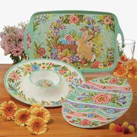 Easter Garden © Susan Winget B D C A A ITEM # DESCRIPTION UPC BAR CODE MIN QTY (A) COST M/C QTY (B) COST 41260 Dinner Plate 10.75” w(h30384*OLMQKk(U 12 $7.20 41261 Dessert Plate 8.5” asst. w(h30384*OLMQLr(w 12 $6.00 41262 Mug 20 oz. asst. w(h30384*OLMQMo(Y 12 $6.00 41275 3-D Carrot Platter 14.5” x 6.25” w(h30384*OLMRPo(Y 2 $18.75 4 $17.50 41276 3-D Carrot Candy Plate 8.75” x 5” w(h30384*OLMRQl(V 2 $8.00 6 $7.00 28630 3-D Leaf Round Platter 13.25” x 13” w(h30384*MSQNKk(U 2 $20.00 4 $18.75 B ITEM # DESCRIPTION UPC BAR CODE MIN QTY (A) COST M/C QTY (B) COST 41263 Ice Cream Bowl 6” x 3” asst. w(h30384*OLMQNl(V 12 $6.00 41264 Oval Platter 17” x 12.5” w(h30384*OLMQOs(x 2 $24.00 41273 3-D Deviled Egg Plate 12.25” w(h30384*OLMRNk(U 2 $20.00 28632 3-D Leaf Deep Bowl 10” x 4.75” w(h30384*MSQNMo(Y 2 $22.50 28633 3-D Leaf Canape Plate 6” w(h30384*MSQNNl(V 12 $4.20 C ITEM # DESCRIPTION UPC BAR CODE MIN QTY (A) COST M/C QTY (B) COST 41265 Canape Plate 6” asst. w(h30384*OLMQPp(u 12 $4.50 41266 Rectangular Platter Embossed 14.5” x 10.5” w(h30384*OLMQQm(W 2 $18.75 4 $17.50 41267 Serving/Pasta Bowl 13” x 3” w(h30384*OLMQRt(y 2 $20.00 41271 2-Tier Server (7” and 9” plate) w(h30384*OLMRLq(v 2 $15.00 4 $13.75 41272 3-D Handled Basket 8” w(h30384*OLMRMn(X 2 $13.00 4 $12.00 D ITEM # DESCRIPTION UPC BAR CODE MIN QTY (A) COST M/C QTY (B) COST 41268 Deep Bowl 9.25” x 5” w(h30384*OLMQSq(v 2 $18.75 41269 Pedestal Cake Plate 10” x 4.5” w(h30384*OLMQTn(X 2 $21.50 41270 3-D Bunny Cookie Jar 12” w(h30384*OLMRKt(y 2 $25.00 41274 3-D Egg Cup (2) asst. (3.25”, 2.5”) w(h30384*OLMROr(w 6 $5.75 12 $5.00 28631 3-D Leaf Oval Platter 15.5” x 12” w(h30384*MSQNLr(w 2 $22.50 87
