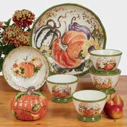 A B C D A ITEM # DESCRIPTION UPC BAR CODE MIN QTY (A) COST M/C QTY (B) COST 28730 Dinner Plate 10.75” w(h30384*MSRNKr(w 12 $7.50 28731 Dessert Plate 8.5” asst. w(h30384*MSRNLo(Y 12 $6.25 28732 Mug 16 oz. asst. w(h30384*MSRNMl(V 12 $6.25 28964 Pumpkin Platter 13.75” x 11.5” w(h30384*MSTQOq(v 2 $22.50 4 $21.50 B ITEM # DESCRIPTION UPC BAR CODE MIN QTY (A) COST M/C QTY (B) COST 28734 Soup/Pasta 8.5” x 2” w(h30384*MSRNOp(u 12 $7.00 28735 Serving/Pasta 12.75” x 3” w(h30384*MSRNPm(W 2 $21.00 22236 3-D Sunflower Dessert Plate 8.5” w(h30384*MMMNQk(U 8 $6.25 C ITEM # DESCRIPTION UPC BAR CODE MIN QTY (A) COST M/C QTY (B) COST 28733 Ice Cream Bowl 5.5” x 3” asst. w(h30384*MSRNNs(x 12 $6.25 28736 Deep Bowl 11” x 5” w(h30384*MSRNQt(y 2 $25.00 28738 Rectangular Platter 14” x 10” w(h30384*MSRNSn(X 2 $19.50 4 $18.25 22237 3-D Sunflower Ice Cream Bowl 6.5” x 2.5” w(h30384*MMMNRr(w 8 $6.25 D ITEM # DESCRIPTION UPC BAR CODE MIN QTY (A) COST M/C QTY (B) COST 28737 Oval Turkey Platter 16” x 12” w(h30384*MSRNRq(v 2 $23.60 28739 Canape Plate 6” Square asst. w(h30384*MSRNTk(U 12 $4.75 28962 Pumpkin Tureen w/Ladle 2.75 qt. (ladle 9.75”) w(h30384*MSTQMm(W 1 $28.00 2 $26.25 28963 Pumpkin Gravy Boat 32 oz. w(h30384*MSTQNt(y 2 $12.00 6 $11.00 68