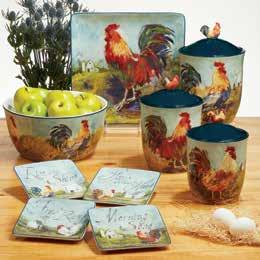 C D Rooster Meadow © Susan Winget B A A ITEM # DESCRIPTION UPC BAR CODE MIN QTY (A) COST M/C QTY (B) COST 28800 Dinner Plate 11” asst. w(h30384*MSSKKr(w 12 $7.50 28803 Ice Cream Bowl 5.25” x 3” asst. w(h30384*MSSKNs(x 12 $6.25 28806 Pitcher 3 qt. w(h30384*MSSKQt(y 2 $22.75 B ITEM # DESCRIPTION UPC BAR CODE MIN QTY (A) COST M/C QTY (B) COST 28801 Salad Plate 9” asst. w(h30384*MSSKLo(Y 12 $6.25 28802 Mug 20 oz. asst. w(h30384*MSSKMl(V 12 $6.25 28808 Oval Platter 16” x 12” w(h30384*MSSKSn(X 2 $23.60 28813 3-D Rooster Salt & Pepper Set 4.5” w(h30384*MSSLNr(w 2 $9.00 6 $8.50 C ITEM # DESCRIPTION UPC BAR CODE MIN QTY (A) COST M/C QTY (B) COST 28804 Soup/Pasta Bowl 9” x 2” asst. w(h30384*MSSKOp(u 12 $7.00 28807 Serving/Pasta Bowl 13” x 3” w(h30384*MSSKRq(v 2 $21.00 28812 3-D Rooster Cookie Jar 11” w(h30384*MSSLMk(U 2 $26.25 D ITEM # DESCRIPTION UPC BAR CODE MIN QTY (A) COST M/C QTY (B) COST 28805 Square Platter 12.5” w(h30384*MSSKPm(W 2 $20.00 4 $18.75 28809 Canister Set 3 pc. 52, 74, 96 oz. w(h30384*MSSKTk(U 1 $52.50 28810 Deep Bowl 11” x 5.5” w(h30384*MSSLKq(v 2 $25.00 28811 Canape Plate Square 6” asst. w(h30384*MSSLLn(X 12 $4.75 21