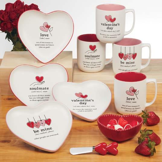 E ITEM # DESCRIPTION UPC BAR CODE MIN QTY (A) COST M/C QTY (B) COST 12316 Easter Fun Sayings Mug 18 oz. asst. w(h30384*LMNLQm(W 12 $5.00 12317 Easter Fun Sayings Canape Plate 6” asst. w(h30384*LMNLRt(y 12 $4.20 F ITEM # DESCRIPTION UPC BAR CODE MIN QTY (A) COST M/C QTY (B) COST 12315 Easter Bowl Assortment 5” x 2.5” (6) w(h30384*LMNLPp(u 12 $3.25 24 $3.00 G ITEM # DESCRIPTION UPC BAR CODE MIN QTY (A) COST M/C QTY (B) COST 12320 Valentine’s Day Fun Sayings Mug 18 oz. asst. w(h30384*LMNMKt(y 12 $5.00 12321 Valentine’s Day Fun Sayings Heart Shaped Tid Bit Plate 6.75” asst. w(h30384*LMNMLq(v 12 $5.00 12322 Valentine’s Day Heart Shaped Dip Bowl w/ Spreader 5.25” x 2.5” w(h30384*LMNMMn(X 2 $8.00 6 $7.00 H ITEM # DESCRIPTION UPC BAR CODE MIN QTY (A) COST M/C QTY (B) COST 12323 Valentine’s Day Bowl Assortment 5” x 2.5” (6) w(h30384*LMNMNk(U 12 $3.25 24 $3.00