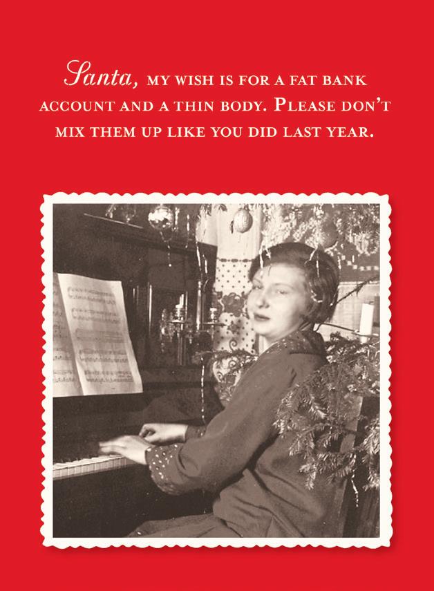 “A LL IS CALM, ALL IS BRIGHT.” WHOEVER WROTE SILENT NIGHT CLEARLY HASN’T BEEN TO OUR HOUSE ON CHRISTMAS EVE WISHING YOU ALL THE JOYS OF THE SEASON! M AY HAPPINESS FILL YOUR HEART AND HOME WITH WARMTH AND GOOD CHEER SMX129 129 8 10006 99829 0 SMX131 A ND HAPPY EVERYTHING! 8 10006 99801 6 F UN ALWAYS FITS! M AY YOUR HOLIDAYS SPARKLE WITH JOY AND LAUGHTER SMX130