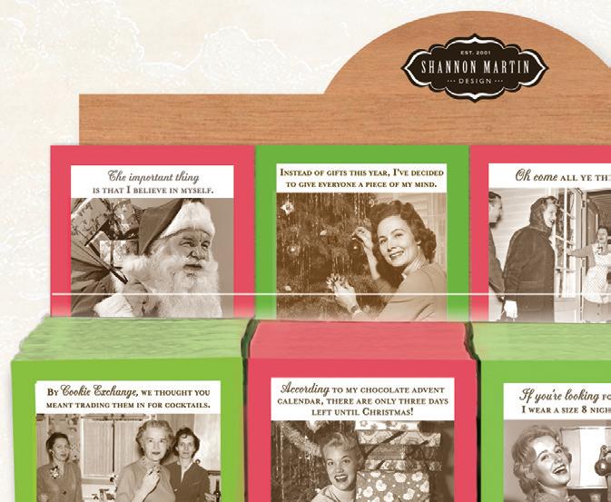 To: New! 8 10098 92237 1 SMX137 New! 8 10006 99830 6 SMX136 New! 8 10098 92236 4 SMX138 8 10098 92238 8 TIS THE SEASON TO EAT, DRINK AND BE MERRY SENDING HOLIDAY CHEER! R EMEMBER , S ANTA IS WATCHING! S WEET HOLIDAY WISHES SHANNON MARTIN DESIGN // shannonmartindesign.com 4