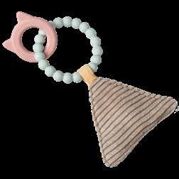 An activity toy with a squeaker, rattle, teether ring, and 6 TAGGIES ribbons. For babies on the go!
