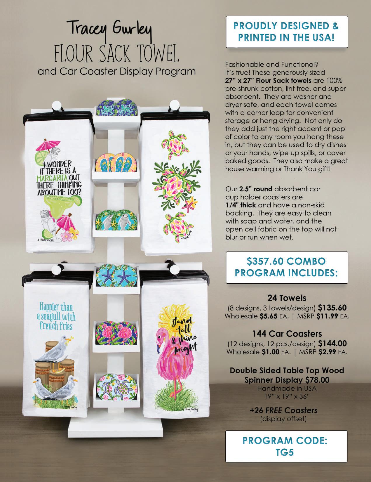 MIN: 3 | WHOLESALE $5.65 ea. MSRP $11.99 ea. FLOUR SACK TOWELS DESIGNED & PRINTED IN THE U.S.A.