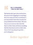With a mix of reflective quotes and vignettes, this book offers fresh ways to embrace mindfulness and find moments worth celebrating. Features foil stamping on a hardcover and tip-ins throughout.