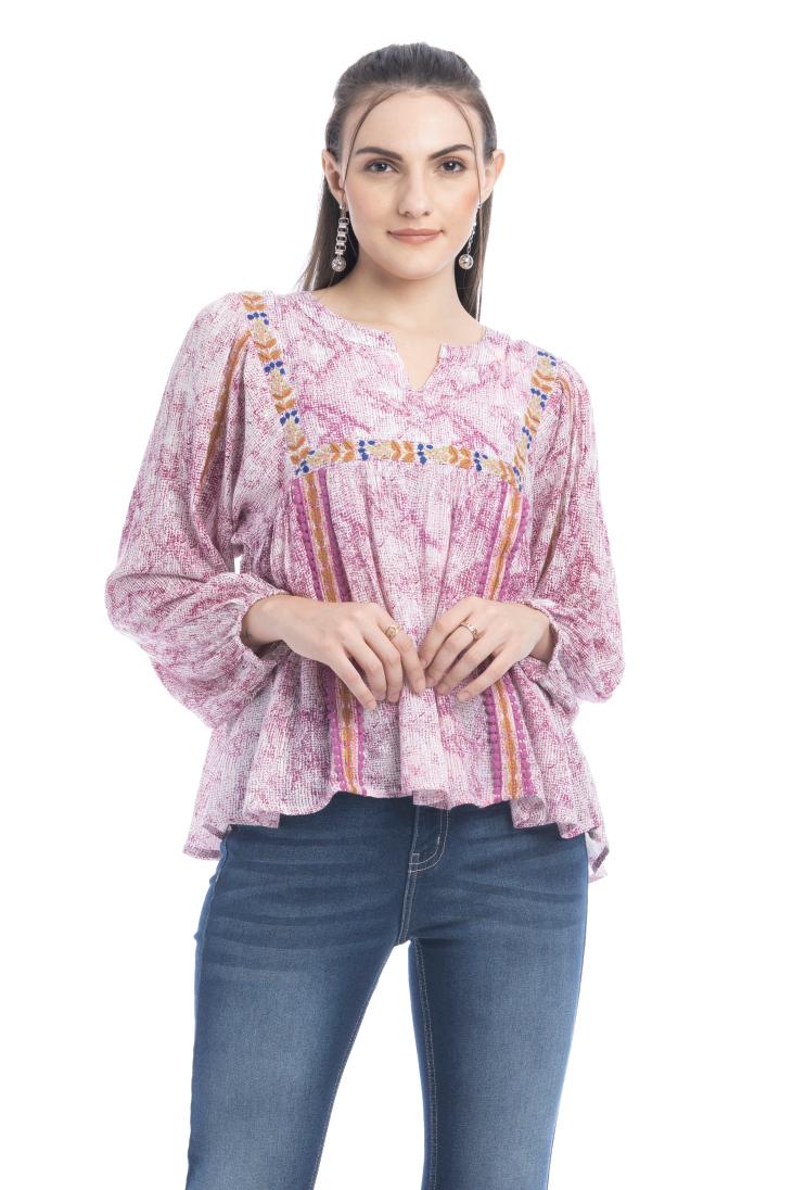 MARJORIE EMBROIDERED FLORALACCENTTOP 100% VISCOSE