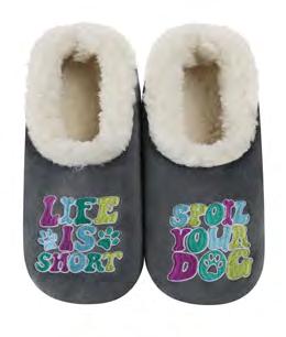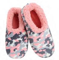 Soft and cozy fabric with paw print design. The perfect snoozies!® style for pet lovers! NEW padded insole has been added for ultimate comfort. Classic snoozies!® body lined with our exclusive pom pom™ cozy sherpa.