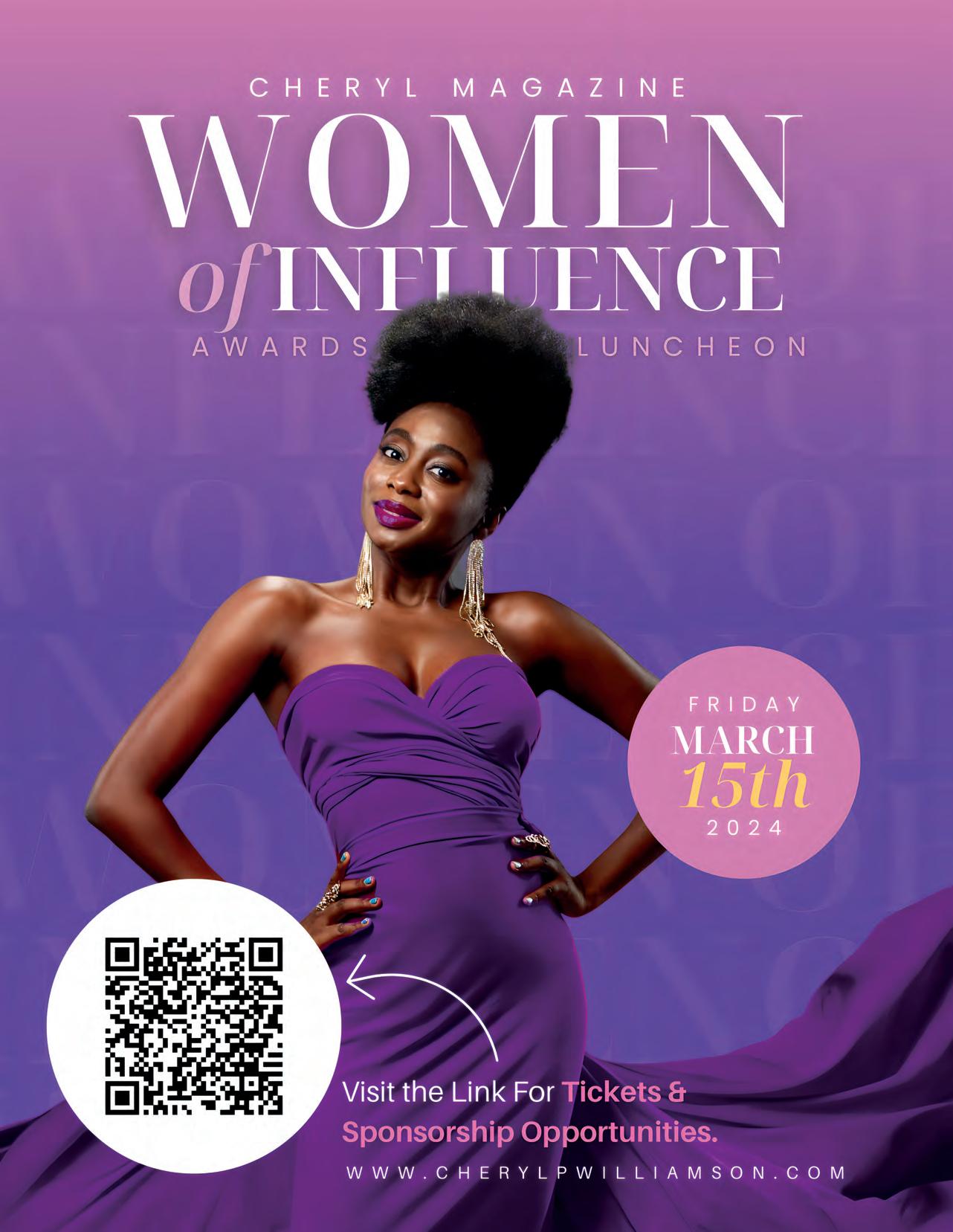 Cheryl Magazine a lifestyle and women’s empowerment publication, is a Cheryl Polote Williamson, LLC (CPW) quarterly produced by Williamson Media Group, LLC (WMG) 6101 Long Prairie Road, Box 744 #269, Flower Mound, TX 75028. Periodicals postage paid at Flower Mound, TX and additional mailing offices. Postmaster: Please send changes of address to Cheryl Magazine 6101 Long Prairie Road, Box 744 #269, Flower Mound, TX 75028. Subscribers, allow 6-8 weeks for change of address to become effective. Subscriptions ordered are non-cancellable and non-refundable unless otherwise promoted. Return postage must accompany all manuscripts, drawings, and photographs submitted if they are to be returned, and no responsibility can be assumed for unsolicited materials. All rights in letters sent to Cheryl Magazine will be treated as unconditionally assigned for publication and copyright purposes and are subject to unrestricted right to edit and to comment editorially. Requests for permission to reprint should be sent to the Permissions and Reprints Department by emailing info@cherylmagazine.com and placing “Request for permission to reprint” in the subject line. The title Cheryl Magazine is registered in the U.S. Patent and Trademark Office. Contents copyright © 2023 by Williamson Media Group, LLC. All rights reserved. Nothing can be reprinted in whole or in part without express written permission from the publisher. Printed in the U.S.A.