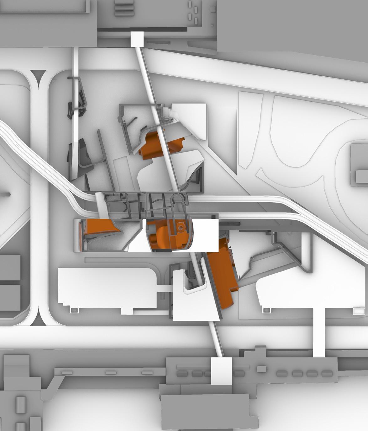 Seen from above, the project reveals its role as a node within a larger network. The architecture no longer follows the rigid logic of traditional blocks; instead, it bends and adapts to the directional forces of the site. Pathways converge, split, and reconnect, generating an urban field where architectural form and infrastructural flow are inseparable. Through this integration, the project becomes a critical interface between ground, architecture, and mobility, proposing an alternative model for future high-intensity urban environments.