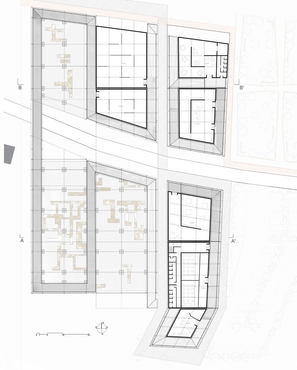 Museo dei resti zona ristoro biblioteca laboratorio di restauro aule di didattica info point section