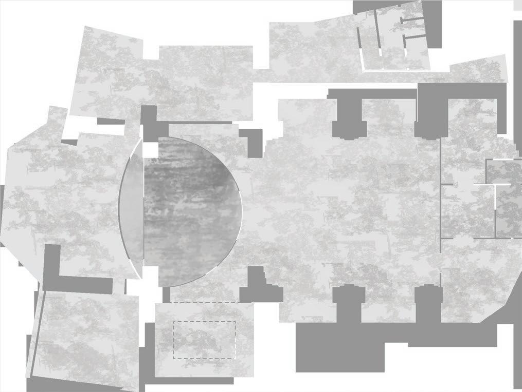 The aim of this proposal is to celebrate and to preserve the decaying beauty of the Fallen Church: the respect of the pre-existing building is the leitmotif of a series of design actions aimed at emphasizing the void, which becomes theprotagonist of the design. The void remains empty and indeed becomes an architectural element. The design of new architectural elements is conceived like slight roofs which attach to the solid walls of the Church. The result is a variety of spaces characterized by different heights, which allows to have the perception of the church space at diverse elevations, but also of the surrounding landscape. The designed components are made of steel and glass structure covered by perforated panels. The chosen material allows the joining between designed and pre-existed elements, because of its perforated steel weave which goes from less to more dense and filters lights. The new parts and the church are linked together by the path that goes through indoors and outdoors spaces and enfolds the entire project. Treading this path the visitors have the possibility to enjoy a complete view of the church and of the panorama. The stage space is located under the dome, to enhance it, and at the same time it is enhanced by beams of light projected from the panel above the dome. Moreover, the view, behind the stage space, becomes the theatrical frame of the performance.