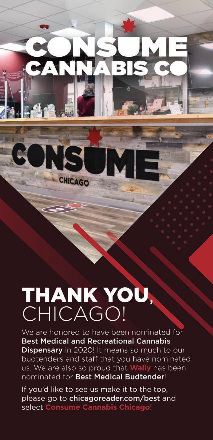 a Reader resource for the canna curious www.neuromedici.com 312-772-2313 Findouttoday ifmedical cannabisorinfusiontherapyis rightforyou.Telemedavailable! Yourpartnersinhealthandwellness. Serving medical cannabis patients since 2015. To advertise, email ads@chicagoreader.com PHYSICIANS GREEN MIND PHYSICIANS MEDICAL CANNABIS CARD CERTIFICATION BY PHONE QUICK & CONVENIENT TELEMEDICINE LIFETIME SUPPORT EXPERIENCED PHYSICIANS RESOURCES FOR CHICAGO PATIENTS greenmindphysicians.com/thereader CBD / cannabis recipes, psychedelic drawings to color, word puzzles to stimulate your brain, growing tips, and more! Print and digital versions available. chicagoreader.com/420book Reader 420 Companion Book A cannacopia of fun! Poetry Foundation | 61 West Superior Street | poetryfoundation.org