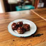 “I always give him shit,” says Jupiter. “‘You stick with all the fancy stu . Let me cook the fried chicken.’” For that, Wolen must redeem the yardbird’s muscular gastric mill, a notoriously tough nugget that it uses to grind its food.